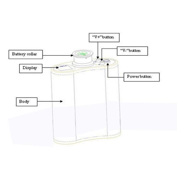 - LCD battery meter, ohm reader, VV setting and puff counter.