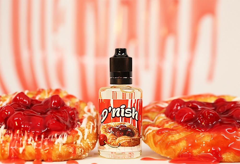 D’nish e-liquid is savory Sugar-Glazed Danish Cherry Pastry flavored e-juice with a sweet yet cherry pastry inhale with a rich and creamy exhale that will leave your mouth watering for more.