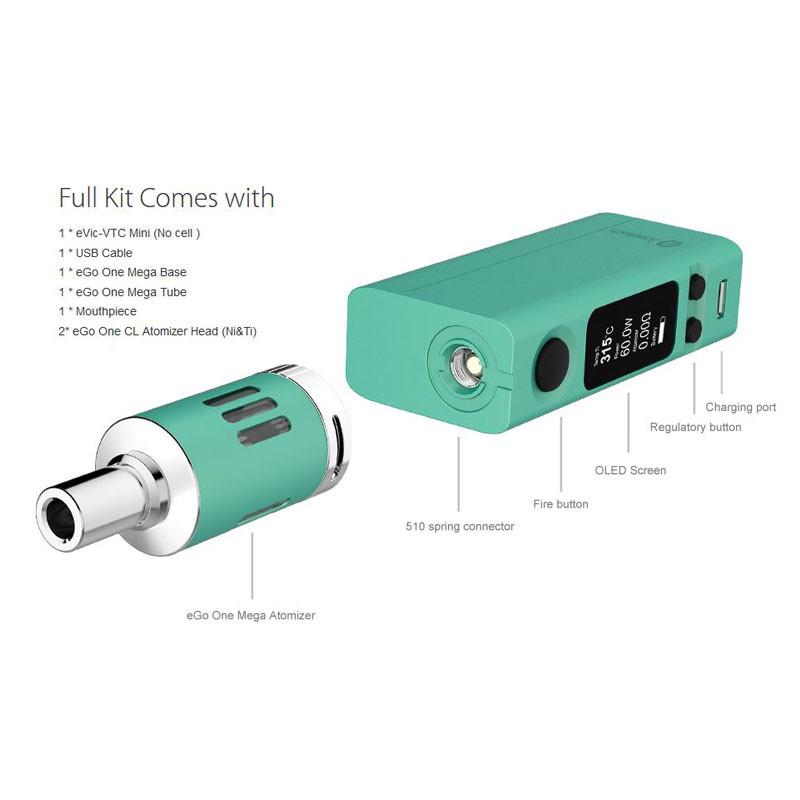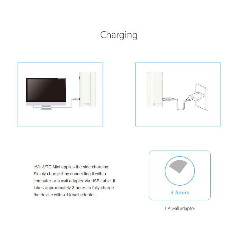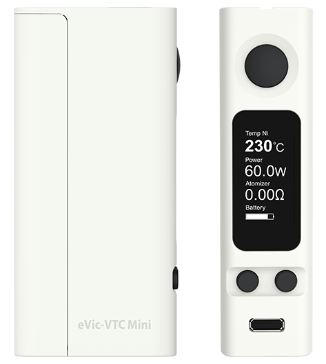 The eVic-VTC Mini 75w kit comes with a Tron-S atomizer tank. This kit is an upgrade from the eVic-VTC Mini 60w TC (temp control) mod. Both versions of the eVic VTC Mini are smaller than the full-size eVic VT and require a single 18650 battery cell (not included).