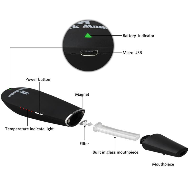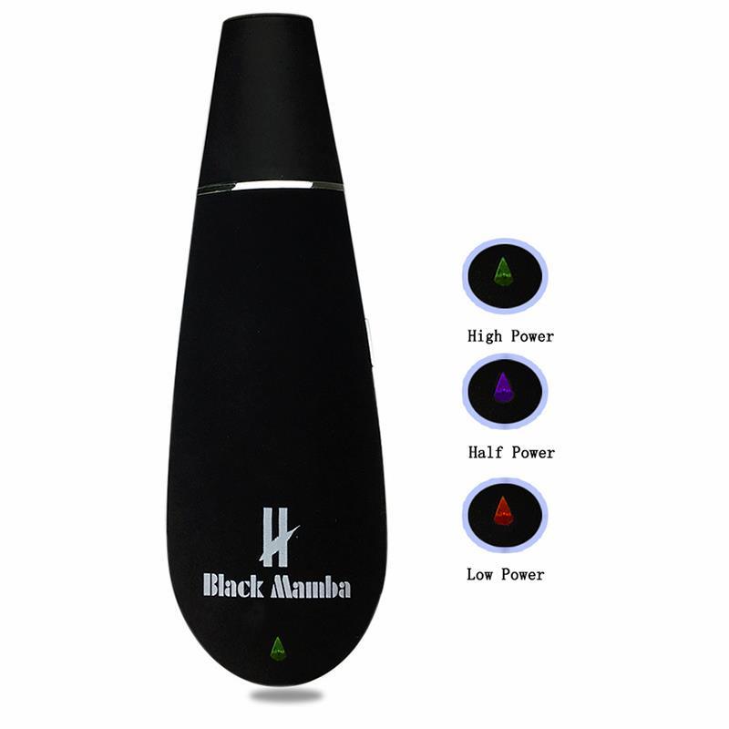 Kingstons Black Mamba Kit is a dry herb vaporizer. This portable dry herb vaporizer has a rubber coating making that ergonomic grip just right. The Blk Vaporizer is easy to use only having one-button to operate along with LED lights indicating which setting the device is currently on.